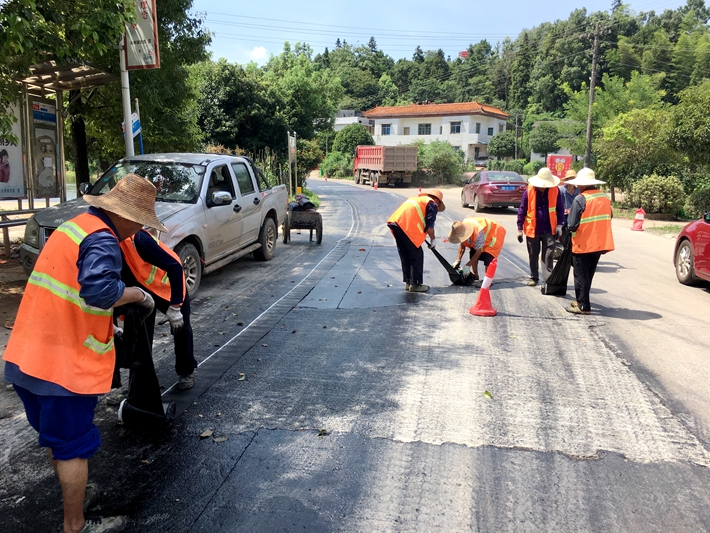 持續(xù)37攝氏度的高溫烈日炙烤,加上瀝青本身高達幾十度的高溫,對現(xiàn)場作業(yè)人員的身體素質(zhì)和專業(yè)素質(zhì)都是極大的考驗。他們以高度的責任感,堅守在自己的崗位上,堅守在施工一線,成為高溫天里靚麗的風景線。
