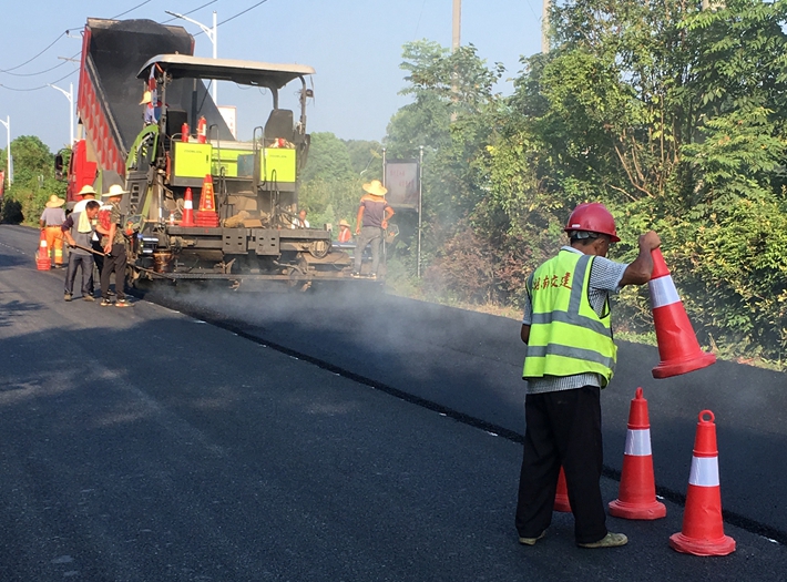 烈日當空,驕陽似火。株洲市茶馬線(X002)荷塘段提質(zhì)改造工程項目進行了為期五天的瀝青路面攤鋪施工任務。走進施工現(xiàn)場是一片忙碌的景象,攤鋪機、安全員、巡視員、打磨工、清潔工各司其職,兢兢業(yè)業(yè),頂著烈日為瀝青攤鋪的順利進行而緊張地忙碌著。